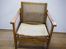 ホテルのレストランの椅子です。背の部分の籐が折れてしまいました。折れた所を付け直した後ウレタンニスで仕上げました。新品とは言いませんがかなり