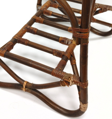 いすのアップの写真を見ていただくとかごめ編みの籐を3~4ミリの棒状の籐で押さえ込んであるのがわかります。