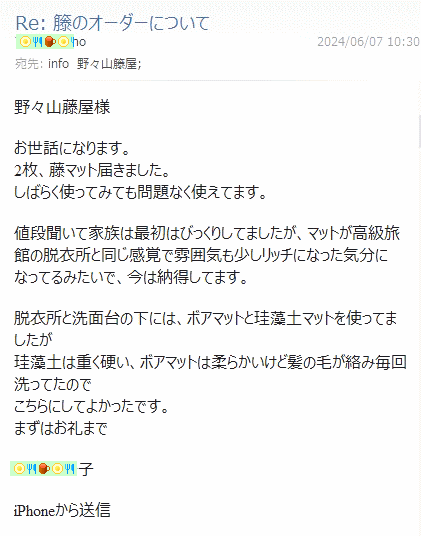 脱衣室に野々山籐屋の籐むしろを敷きたいとご相談のお電話いただきました。